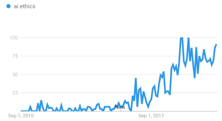 “Cute tech pet gadgets” and “cool drone footage” are some of the trending search phrases. Another one is “AI ethics.” It’s up 250% since the beginning of the year. I get the pet gadgets thing—I might even go look for one myself. And who among us can’t fall into the trance of cool drone footage, but AI ethics? What does that even mean?
